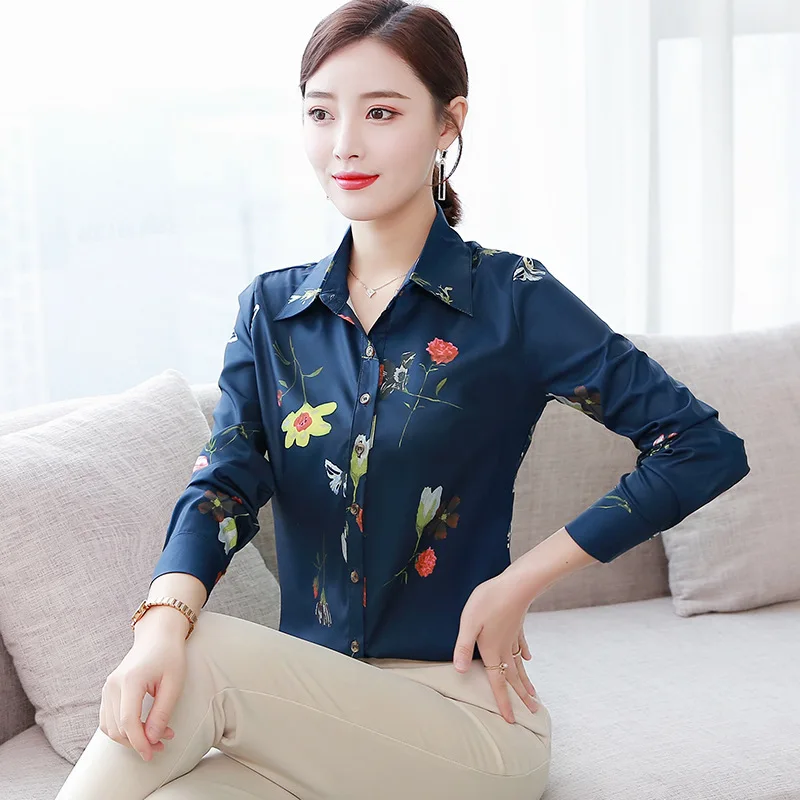 Womens Tops and Blouses Spring Casual Silk Blouse Loose Long Sleeve Shirts For Women Blusas Feminina Blouses Tops Plus Size XXXL