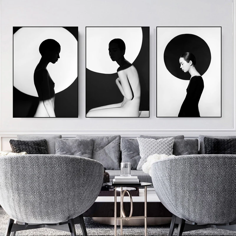 Price Description of Modern Black and White Abstract Women Contemplation Canvas Paintings Poster Wall Art Print Pictures Painting Minimalism Decora