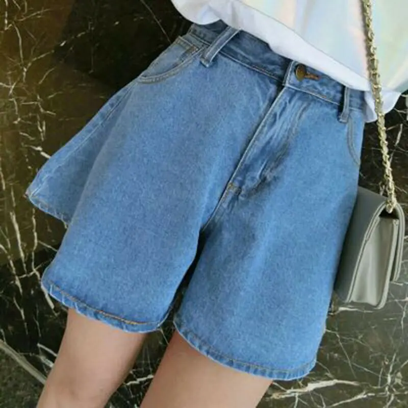 Cheap Polyester Fashion Korean Women Denim Summer Casual and Loose Solid Thin Short High Waist Slim Hot Shorts Free Shipping
