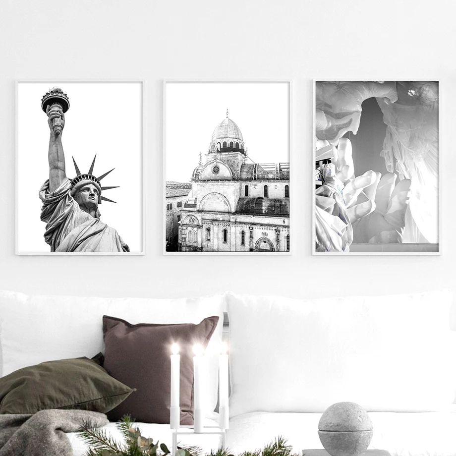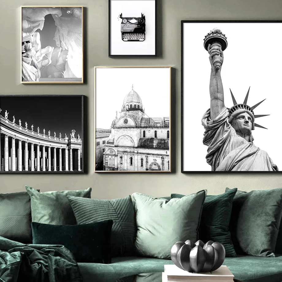 Special Price of Retro Moroccan Gate Gray Statue Liberty Wall Art Canvas Painting Nordic Posters And Prints Wall Pictures For Living Room Decor