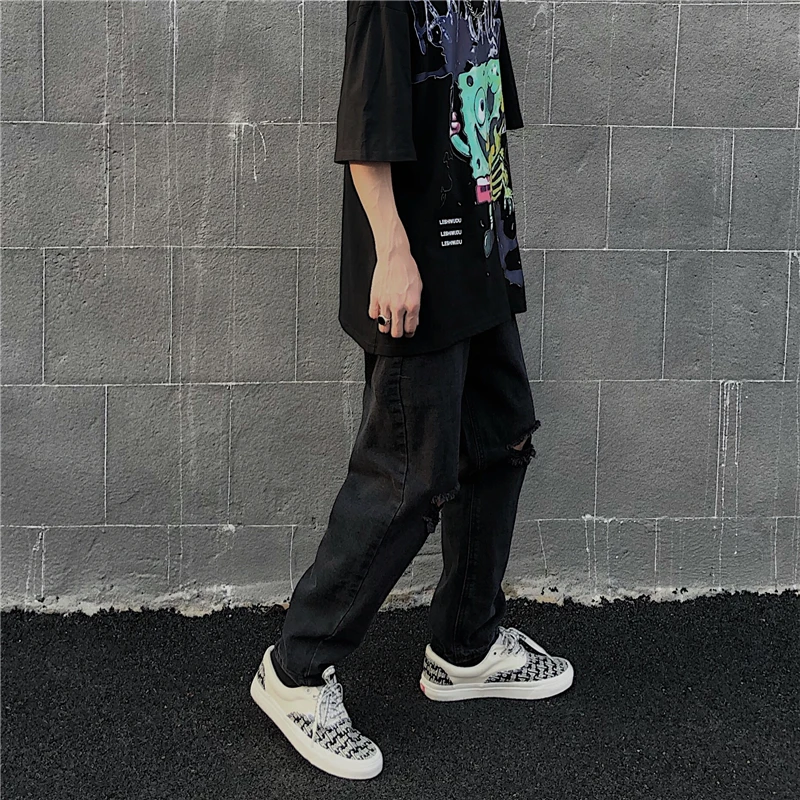 Addition Information of Ripped Straight Jeans Men's Fashion Washed Casual Hole Black Jeans Pants Men Streetwear Wild Loose Hip Hop Denim Trousers Mens