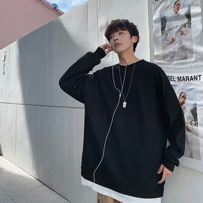 Addition Information of Spring Hoodie Men's Fashion Solid Color Casual O-neck Sweatshirt Men Streetwear Wild Loose Hip Hop Fake Two Hoodies Mens M-2XL