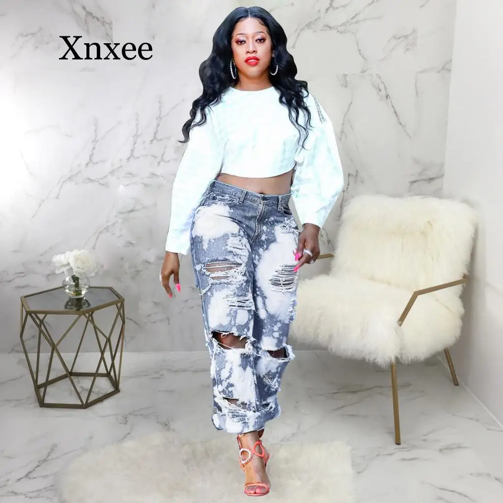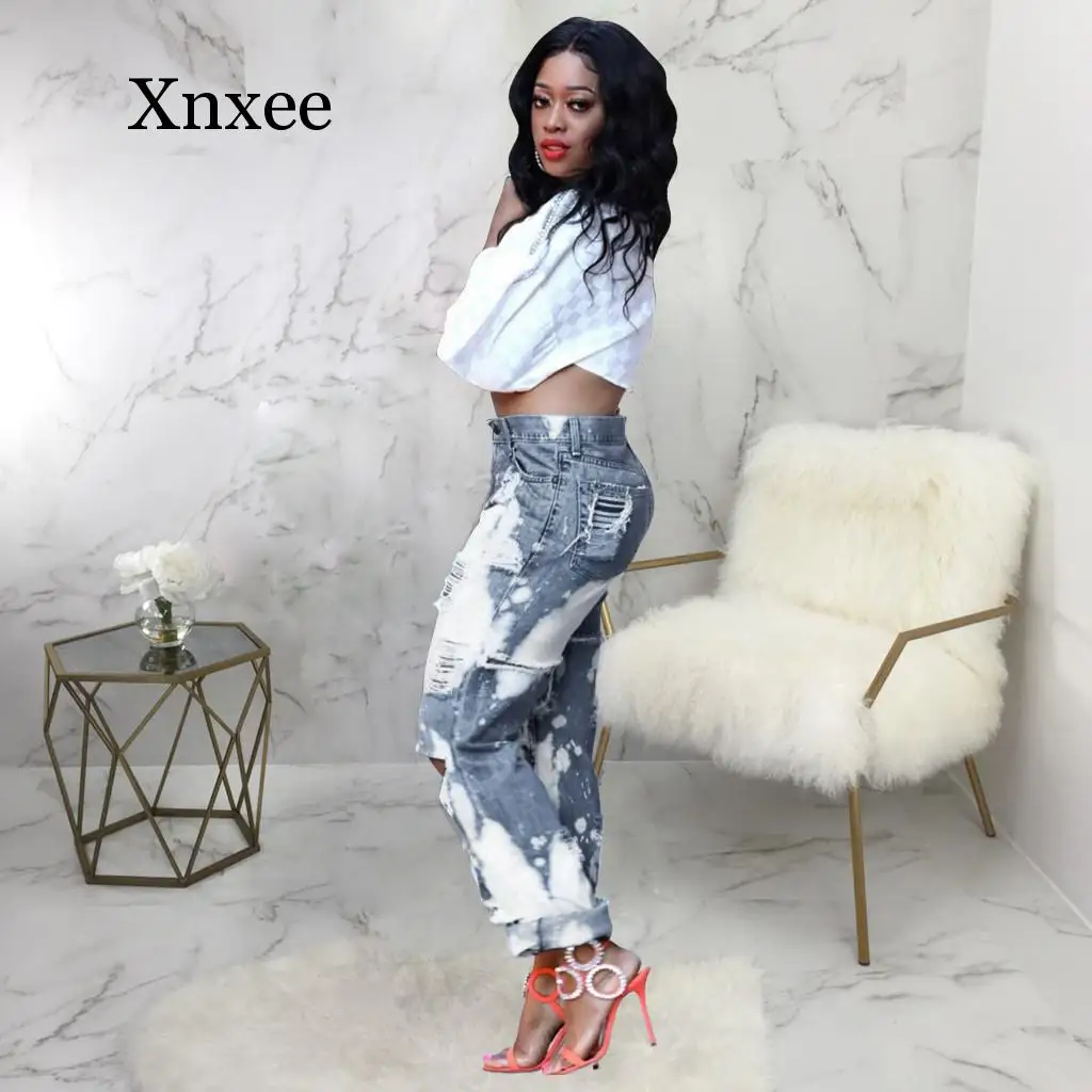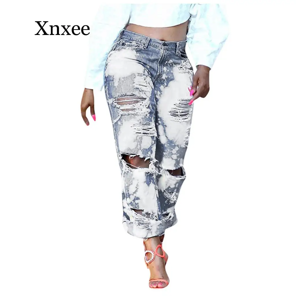 Offer Description for Woman Straight Hole Bleached Pocket High Waist Jeans Woman Plus Size Loose Jeans High Waist Stretch Denim Harem Pants blue Femme