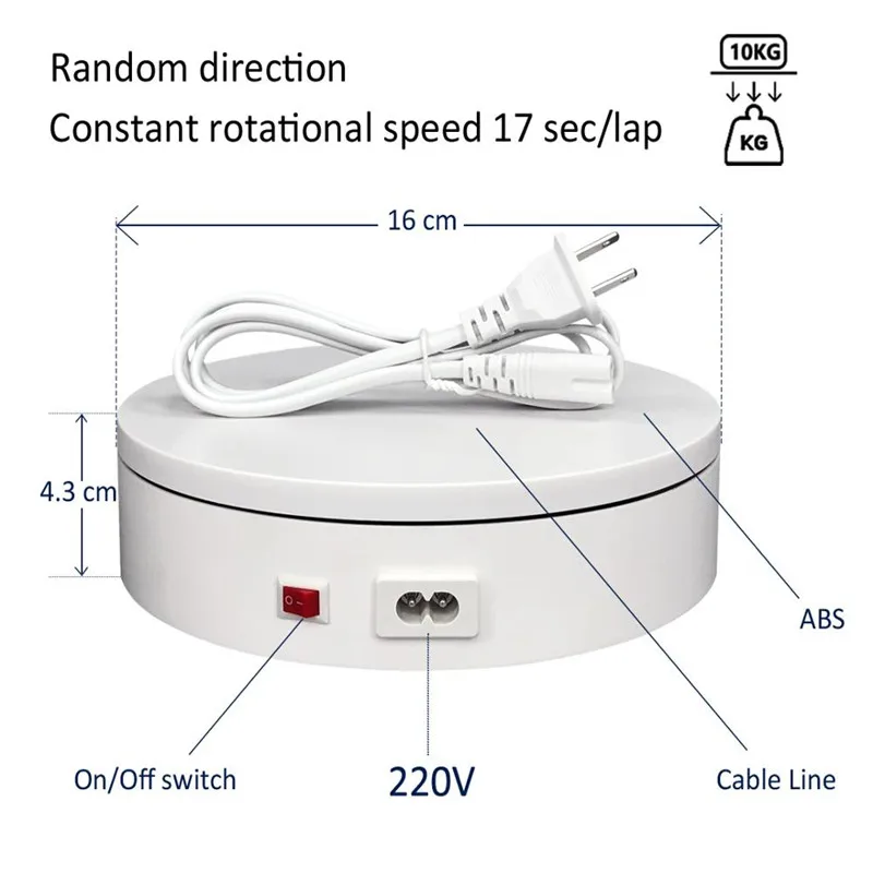 Offer Description for 16cm 220V Load 10kg Electric Turntable 360 Degree Automatic Rotating Photography Turntable Product Video Shooting Display Stand