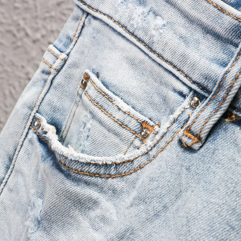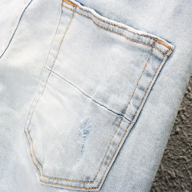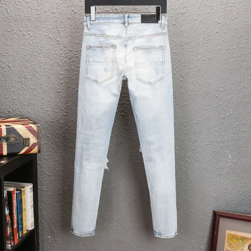.Gallery of 2020 New High Street Fashion Men Jeans Top Quality Slim Fit Light Blue Destroyed Ripped Jeans Men Designer Hip Hop Jeans Hombre