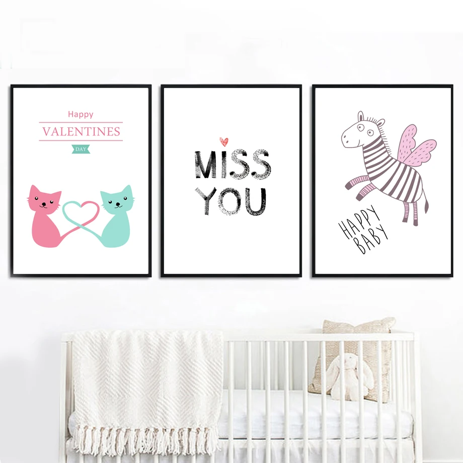 Best Cartoon Cat Pink Zebra Animal Quote Wall Art Canvas Painting Nordic Posters And Prints Wall Pictures Baby Kids Room Home Decor Free Shipping