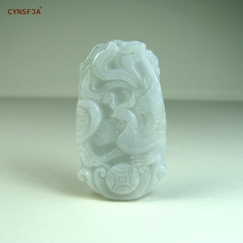 Offer Description for CYNSFJA Real Certified Natural Grade A Burmese Jadeite Amulets Lucky Dragon Phoenix Jade Pendant High Quality One Pair Best Gift