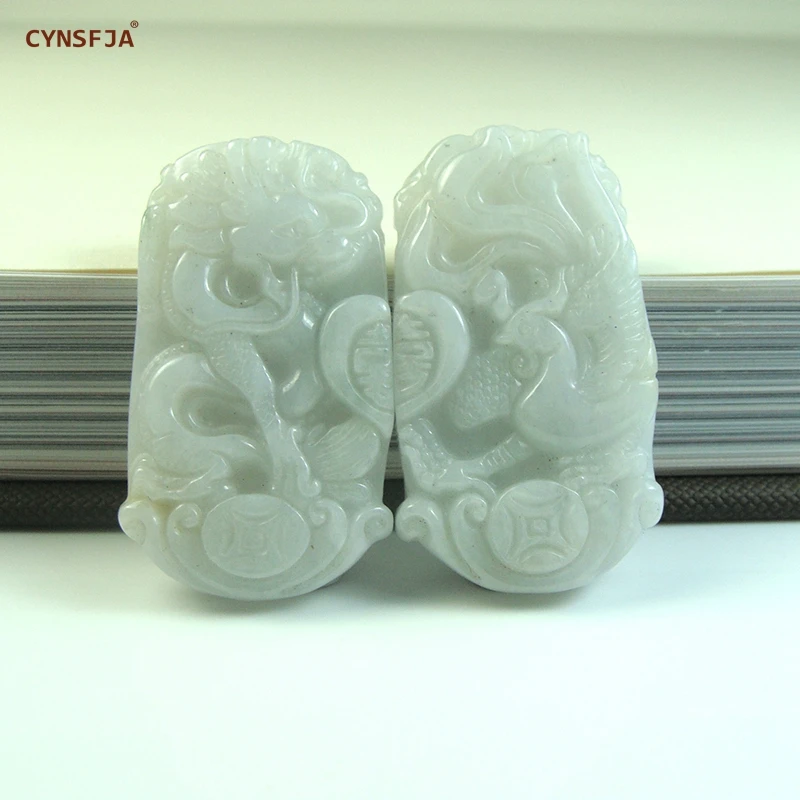 Best CYNSFJA Real Certified Natural Grade A Burmese Jadeite Amulets Lucky Dragon Phoenix Jade Pendant High Quality One Pair Best Gift Free Shipping