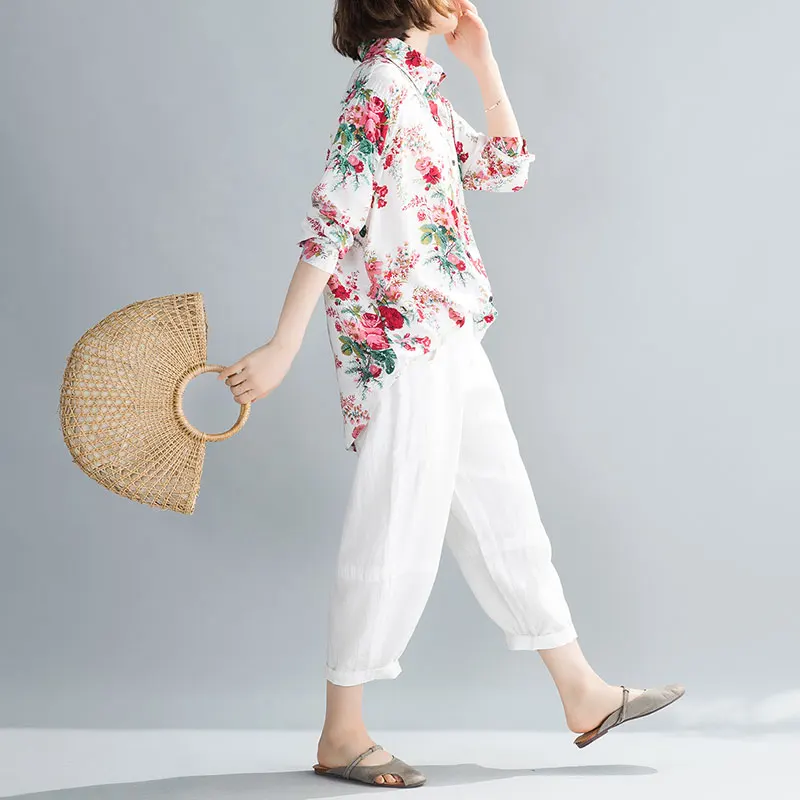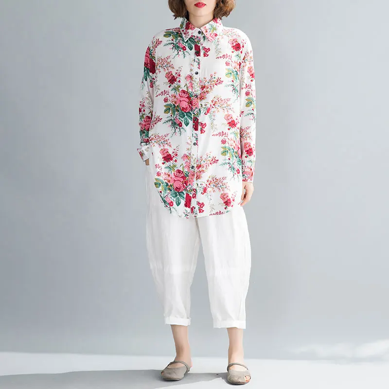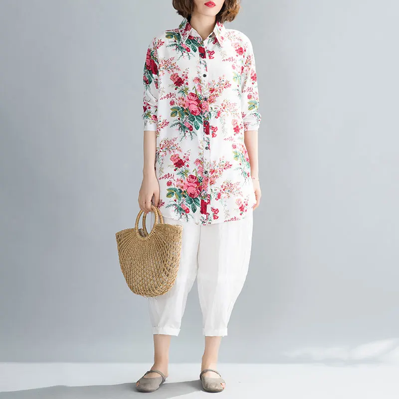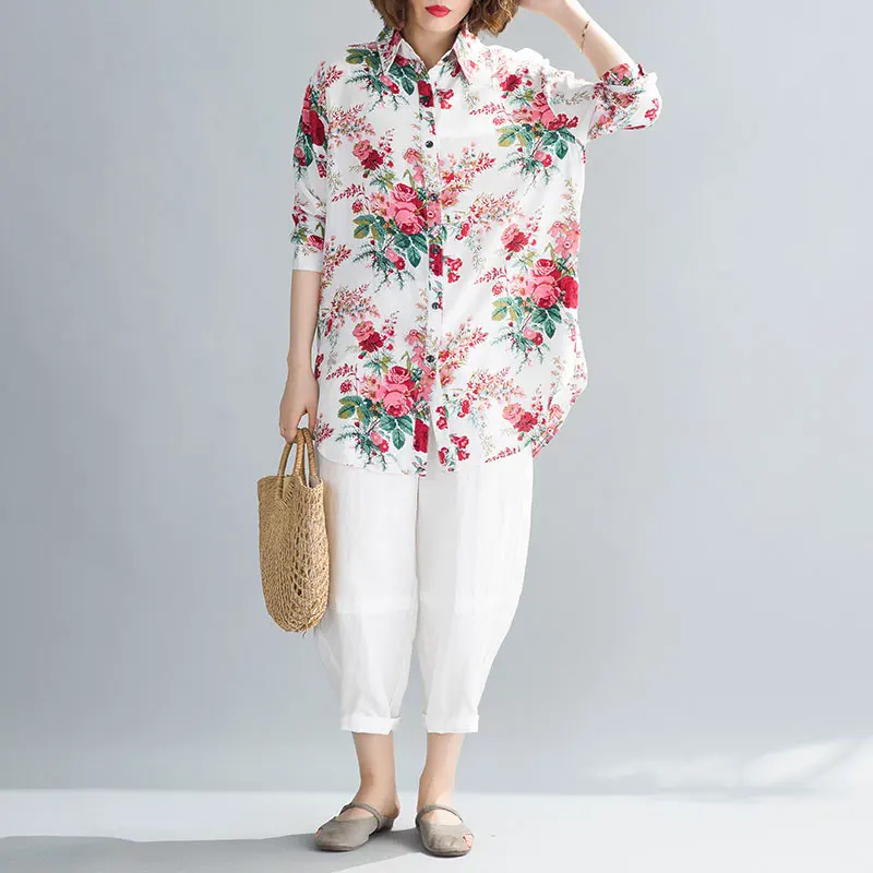.Gallery for DIMANAF Plus Size Women Shirts Spring Summer Elegant Lady Tops Tunic Casual Loose Print Floral Long Sleeve Cardigan Clothes 2020