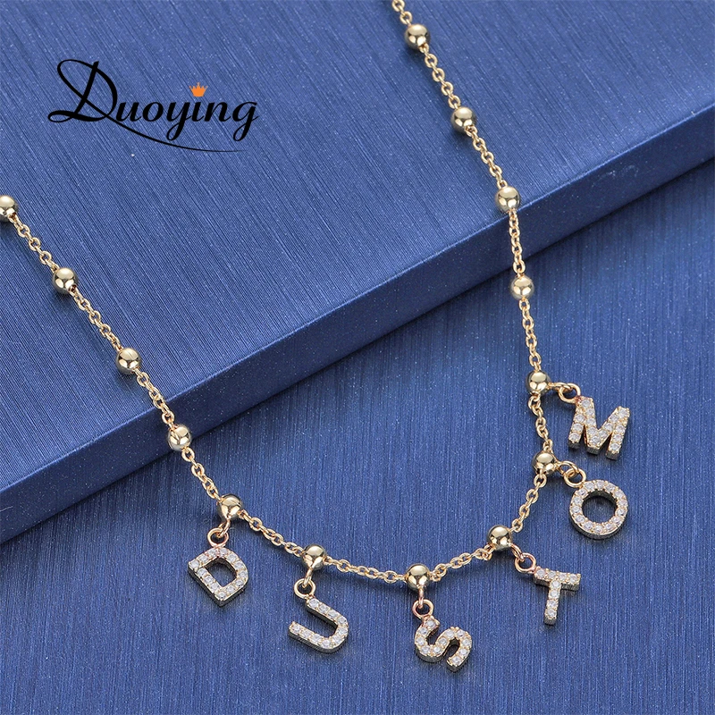 .Gallery of DUOYING Zircon Pave Letter Necklaces Names Balls Chain Necklaces 6mm Letters Personalized Custom Name Necklaces with Zirconia