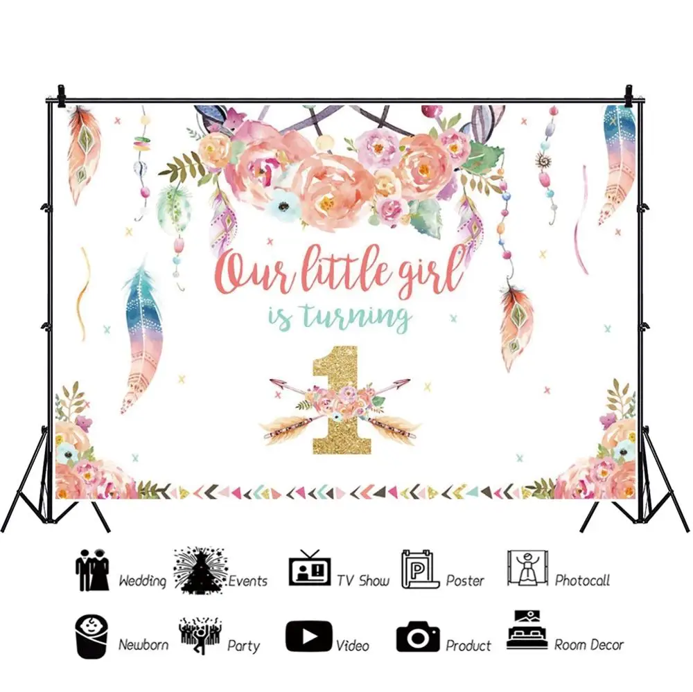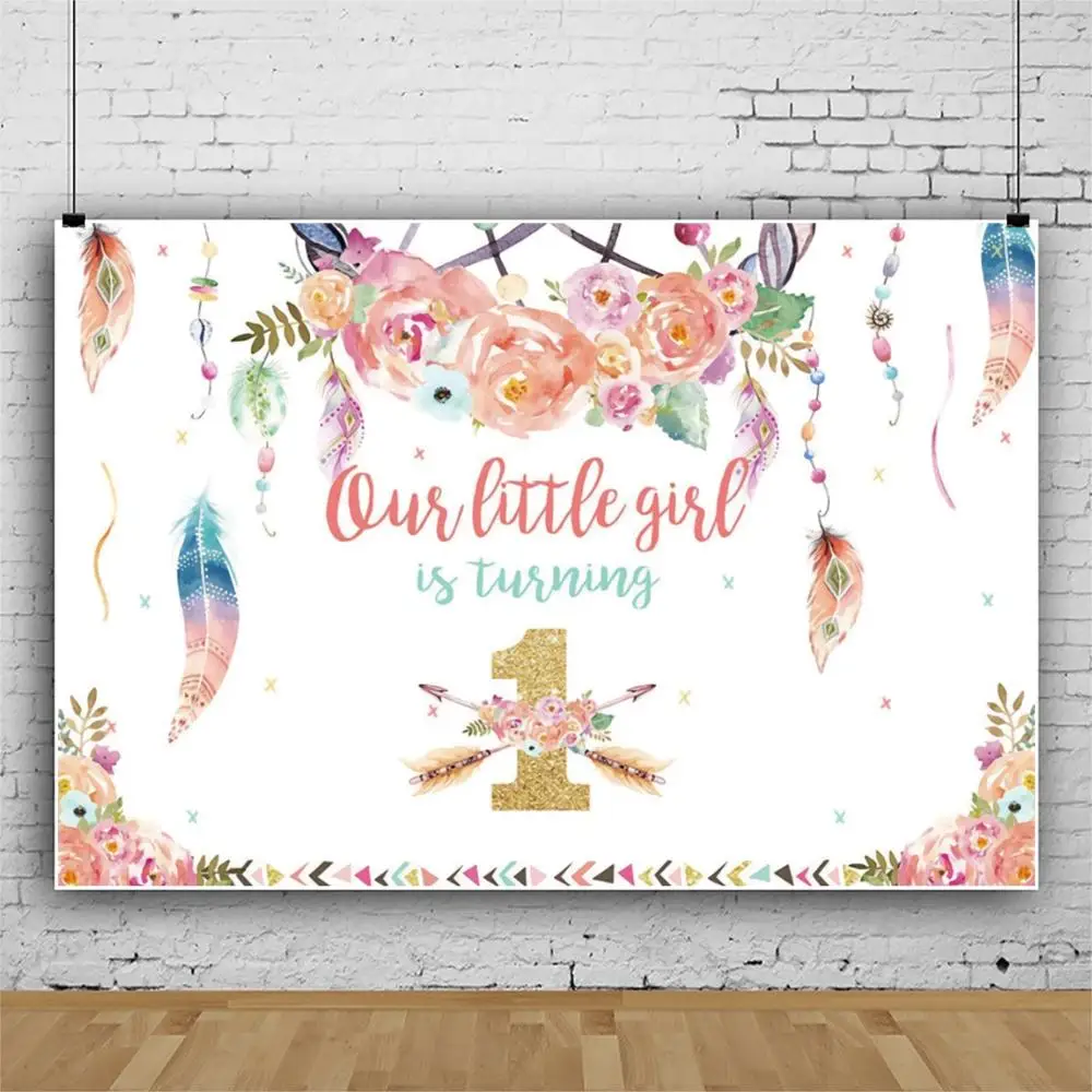 Best Laeacco Little Girl Is Turning Unicorn Feather Photo Backdrop Personalized Photographic Backgrounds For Photo Studio Photophone Free Shipping