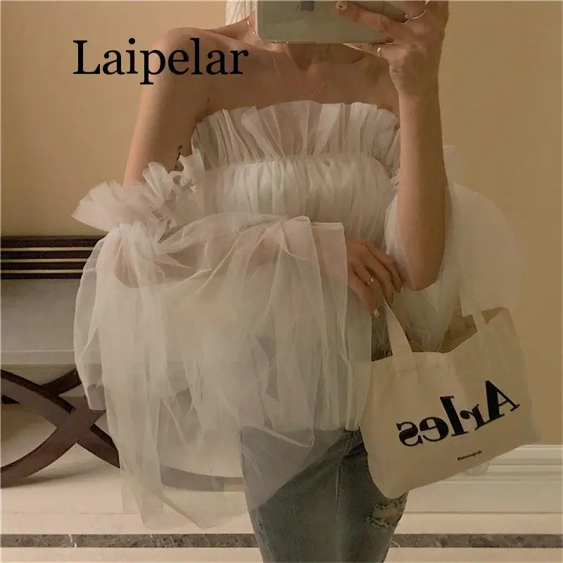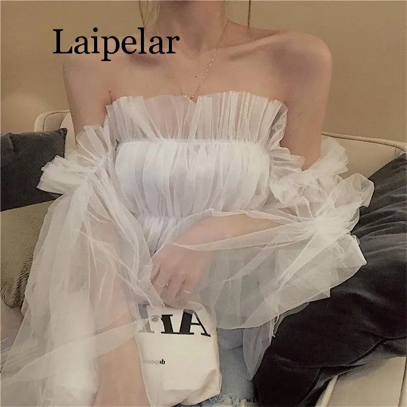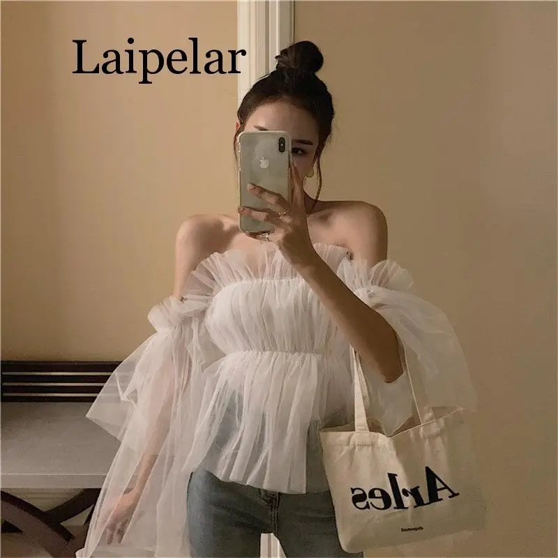 Best Laipelar Mesh Casual Slash Neck Bare Shoulders Fresh 2019 New Elegant Korea Chic Summer Women Sexy Blouse Free Shipping