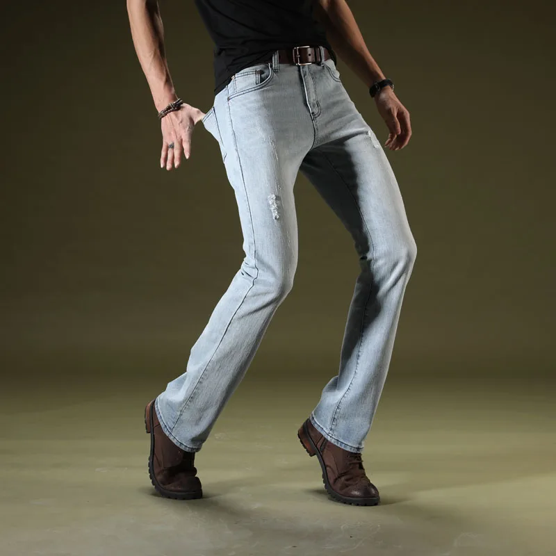 .Gallery of Mens Business Casual Slim Flared Jeans Long Denim Pants Men's Flare Bell Bottom Jeans For Men Boot Cut Stretch Jeans Homme Blue