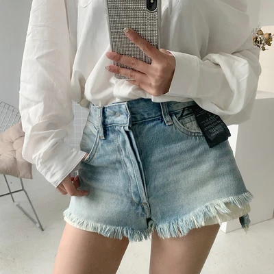 Related Product for [KEYWORD] and New A-line high waist button front and back denim shorts for womenWomen's Hole Denim Shorts Explosion Tassel Jeans With Pocket High Waist Sexy Shorts Spodenki Damskie 2020 Summer