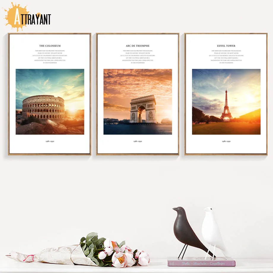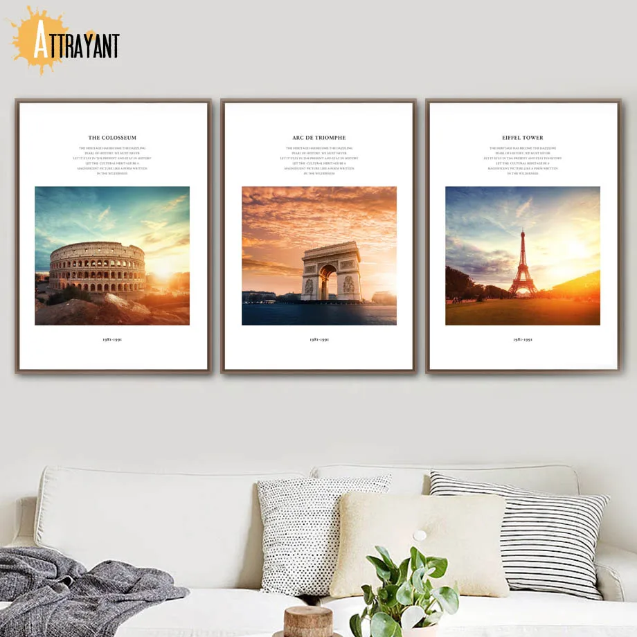 Addition Information of Paris Tower Colosseum triumphal arch Wall Art Canvas Painting Nordic Posters And Prints Wall Pictures For Living Room Home Decor