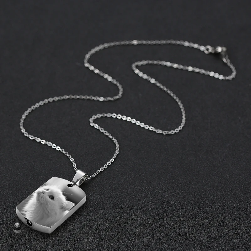Good Offer of Personalized Military Dog Tag Pendant Urn Necklace for Ashes Custom Photo Name Memorial Cremation Urn Engraved Letter Jewelry