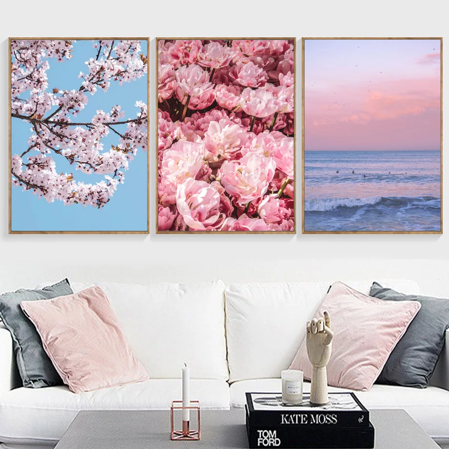 .Images of Pink Flower Ocean Sunset Landscape Wall Art Canvas Painting Nordic Posters And Prints Wall Pictures For Living Room Home Decor