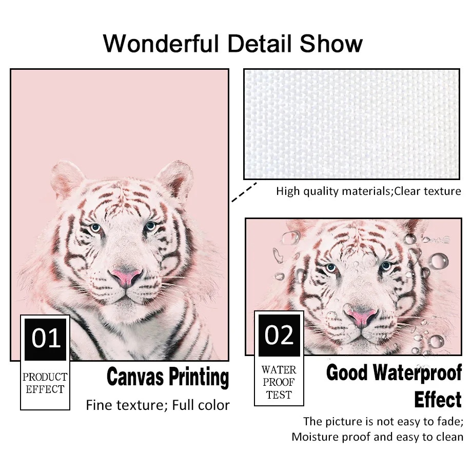Addition Information of Pink Tiger Cute Animal Bear Rabbit Wall Art Canvas Painting Nordic Posters And Prints Wall Pictures Baby Kids Room Home Decor