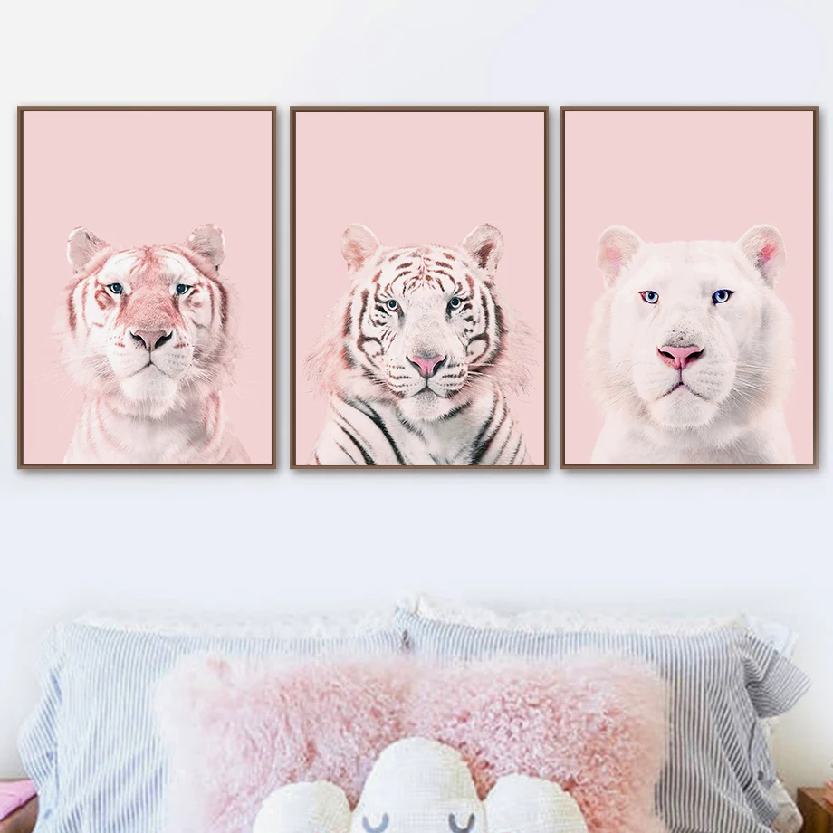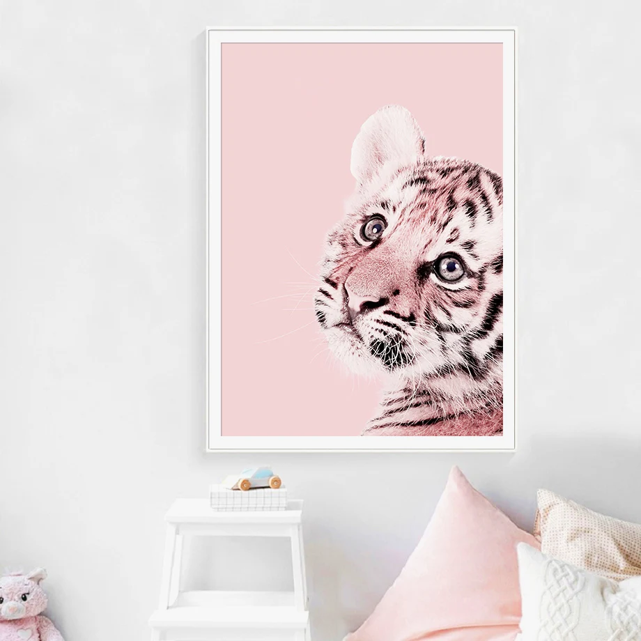 .Gallery of Pink Tiger Cute Animal Bear Rabbit Wall Art Canvas Painting Nordic Posters And Prints Wall Pictures Baby Kids Room Home Decor