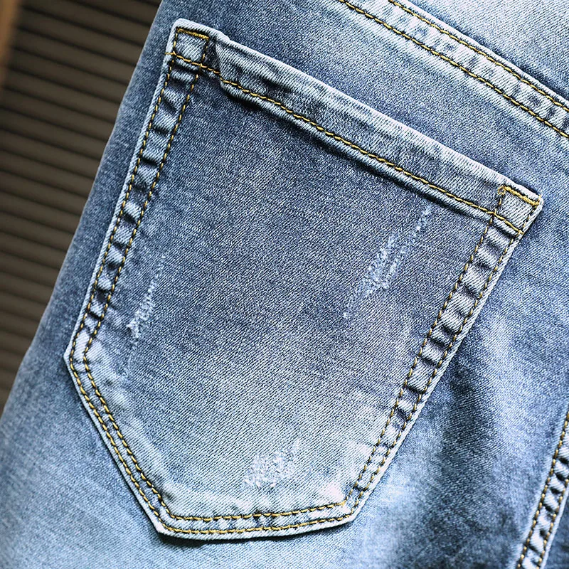 Buy DANTBULUN Men Jeans Brand Slim Fit Patchwork Denim Pants Embroidery Patches Ripped Jeans Men Streetwear High Street Jeans up to 2098-12-31, and You will Save US $8.22 or 24%, Becuase You Just Pay for 14.30 not Full Price for 46.14