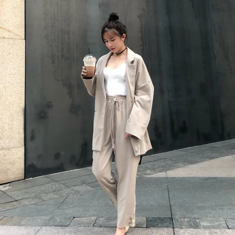 If You will buy for Blazer , then Set female 2019 spring and autumn new loose casual suit trousers two sets of temperament fashion solid color women's clothes is possible make you love