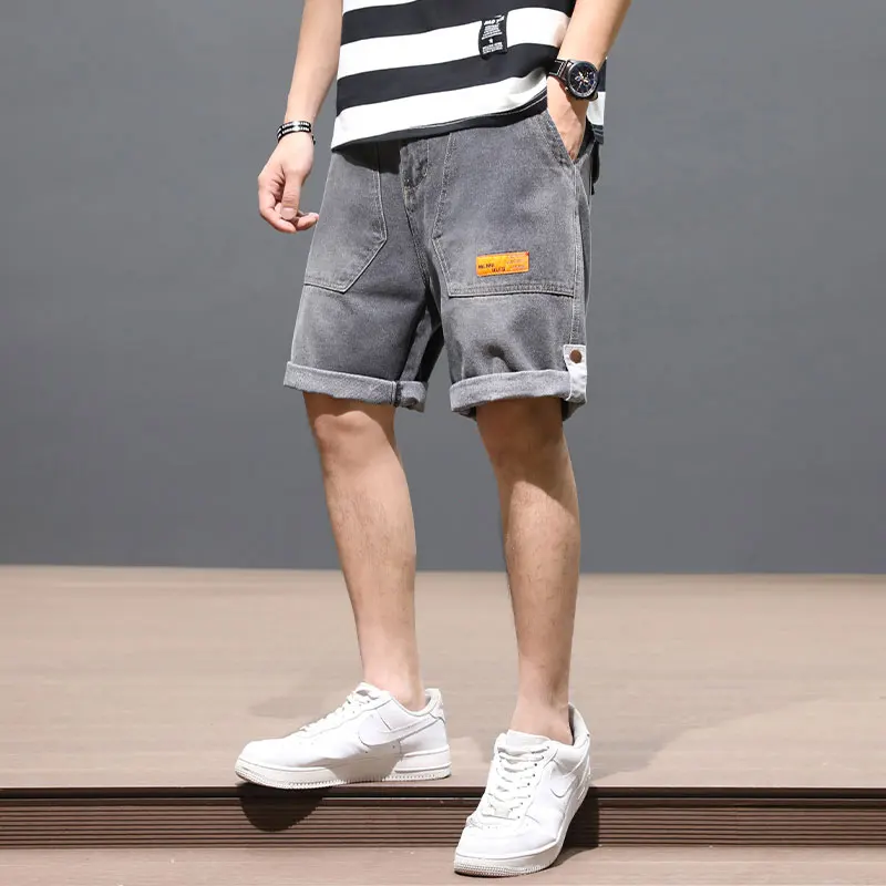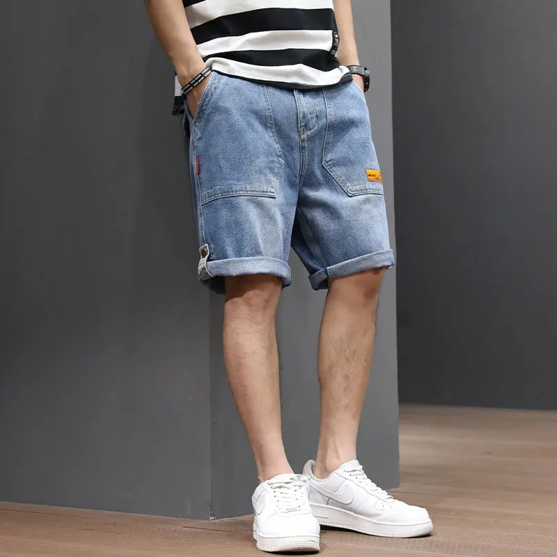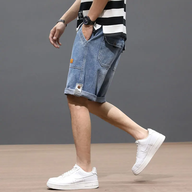 .Gallery of Summer Fashion Designer Men Jeans Big Pocket Straight Fit Blue Color Denim Shorts Hombre Streetwear Hip Hop Short Jeans Men