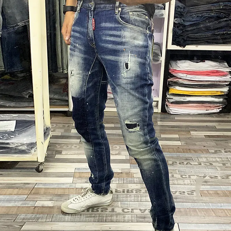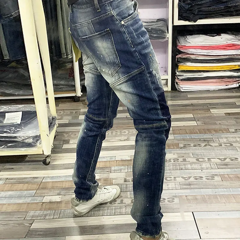 Price Description for Vintage Designer High Quality Streetwear Biker Jeans Fashion Men Jeans Slim Fit Spliced Designer Ripped Jeans Men Hip Hop Pants