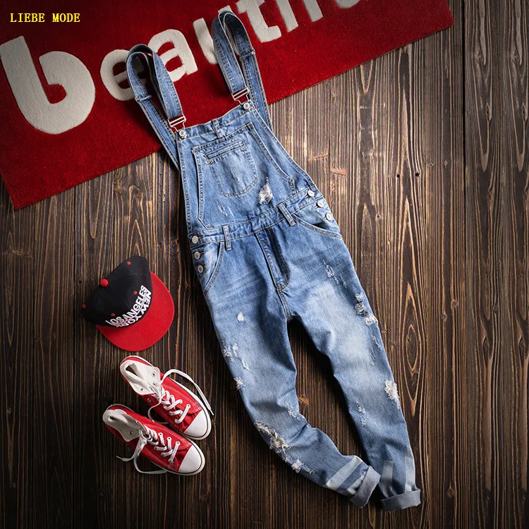 .Gallery for 2017 New Mens Bib Overalls Fashion Denim Overalls Men Ripped Jeans Male Ankle Length Denim Jumpsuit Blue