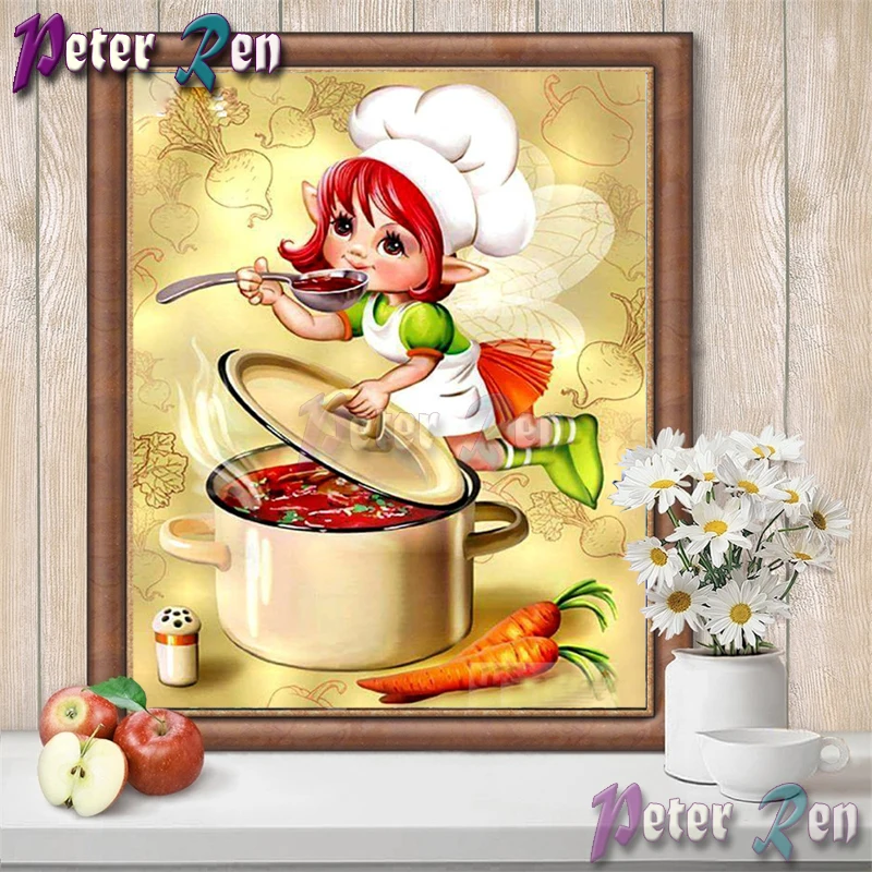 Chance Description of 5d Cartoon chef girl spoon carrot diamond Painting Cross Stitch full Square\Round Embroidery Rhinestone Kitchen home decoration