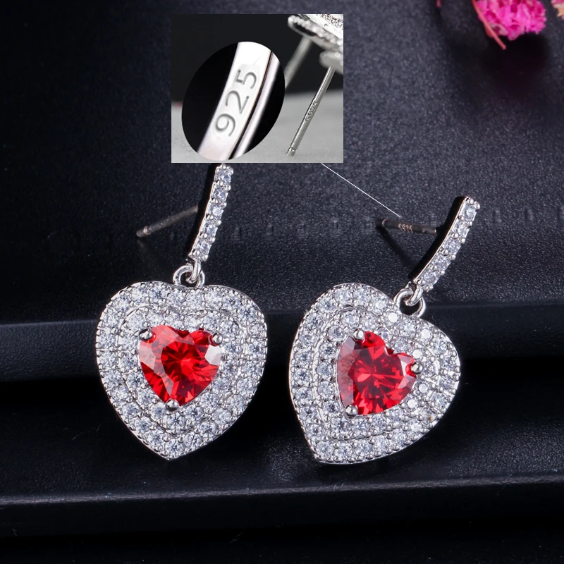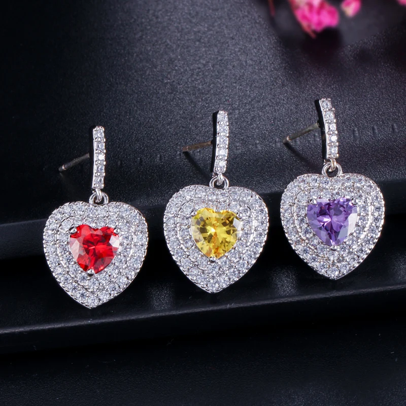 Limited Offer for 6 Color Options Trendy Micro Paved Cubic Zirconia Stones Dangle Drop Romantic Love Earrings Sterling Silver 925 Jewelry CZ385