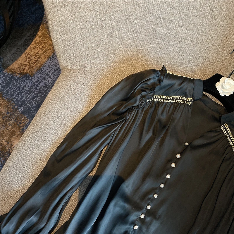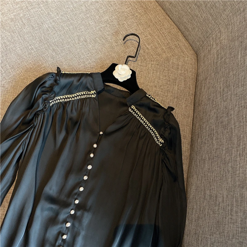 Price Description of Blusas Mujer De Moda 2020 Spring and Summer Retro Elegant V-neck Bright Surface Satin Long Sleeve Chiffon Blouse Ladies Tops