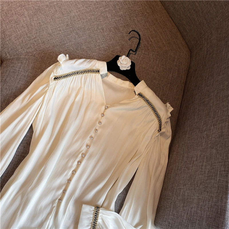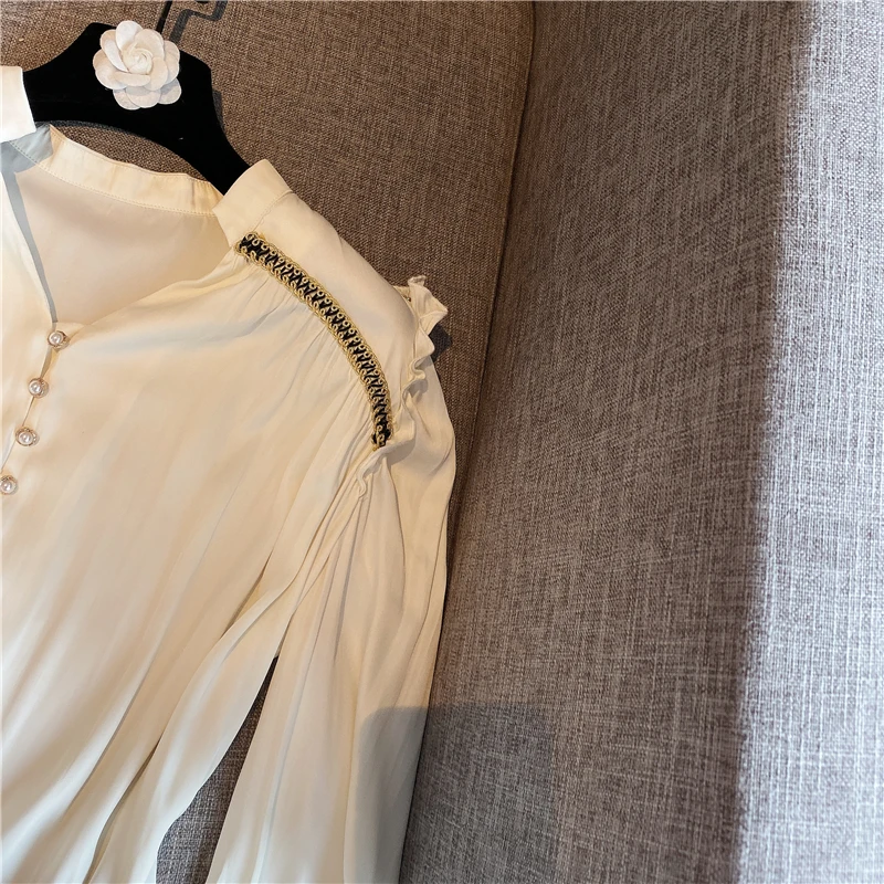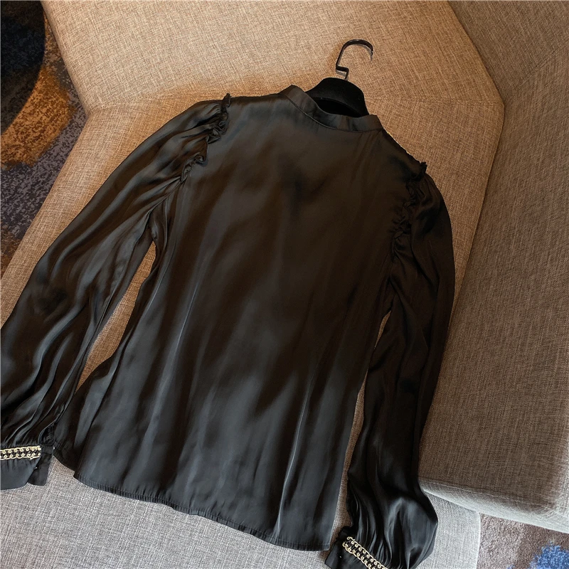 Addition Information of Blusas Mujer De Moda 2020 Spring and Summer Retro Elegant V-neck Bright Surface Satin Long Sleeve Chiffon Blouse Ladies Tops