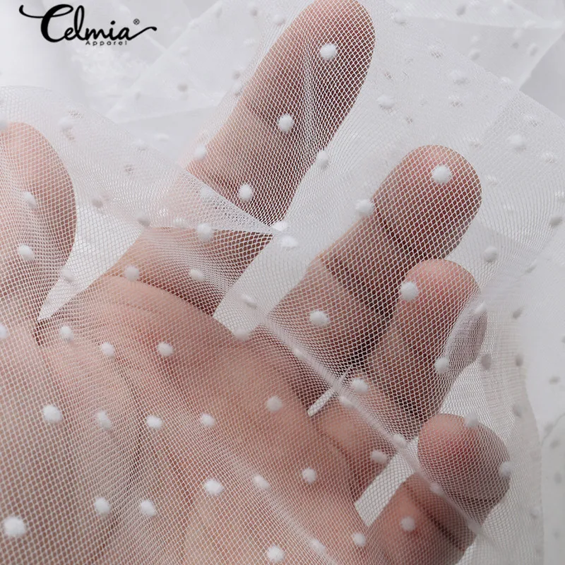 Addition Information of Celmia Sexy Women Mesh Sheer See-Through Long Sleeve Ruffles Tops Fashion Blouses 2020 Summer Bow Neck Loose Casual Shirts 5XL