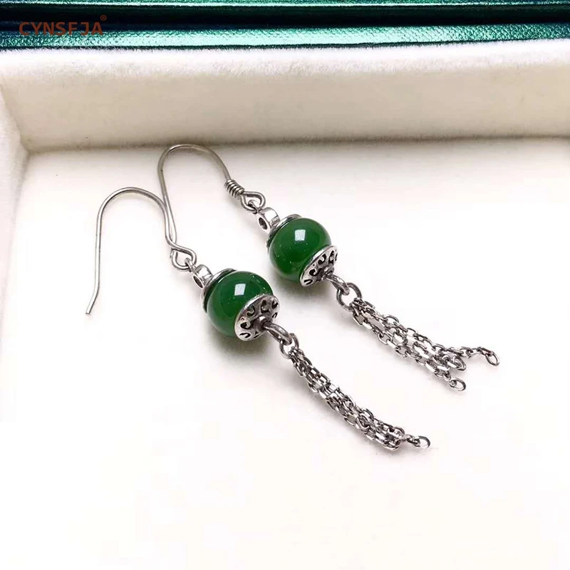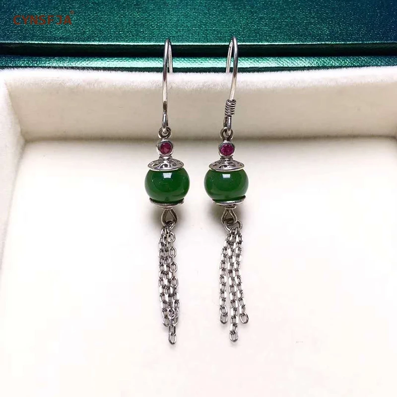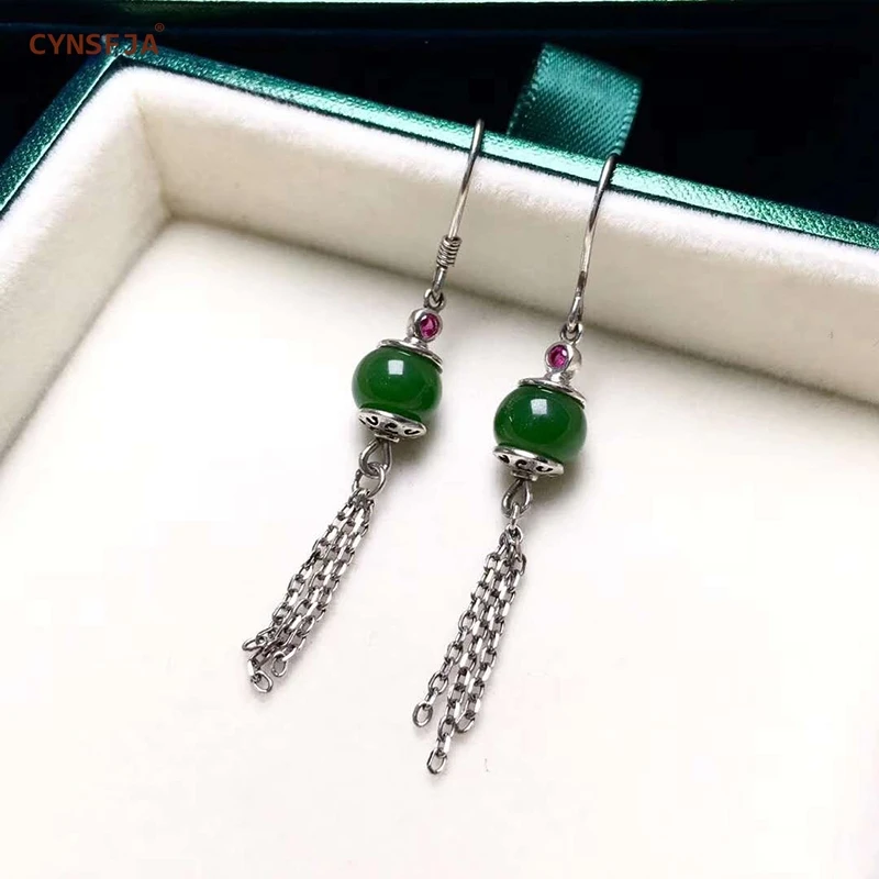 Best Chance of CYNSFJA Real Certified Natural Hetian Jade Jasper 925 Sterling Silver Fine Jewelry Green Jade Earrings High Quality Best Gifts