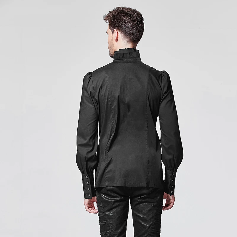 .Images for Gothic Ruffles Man Shirt Steampunk Black White Long Sleeve Single Breasted Cotton Shirt Tops