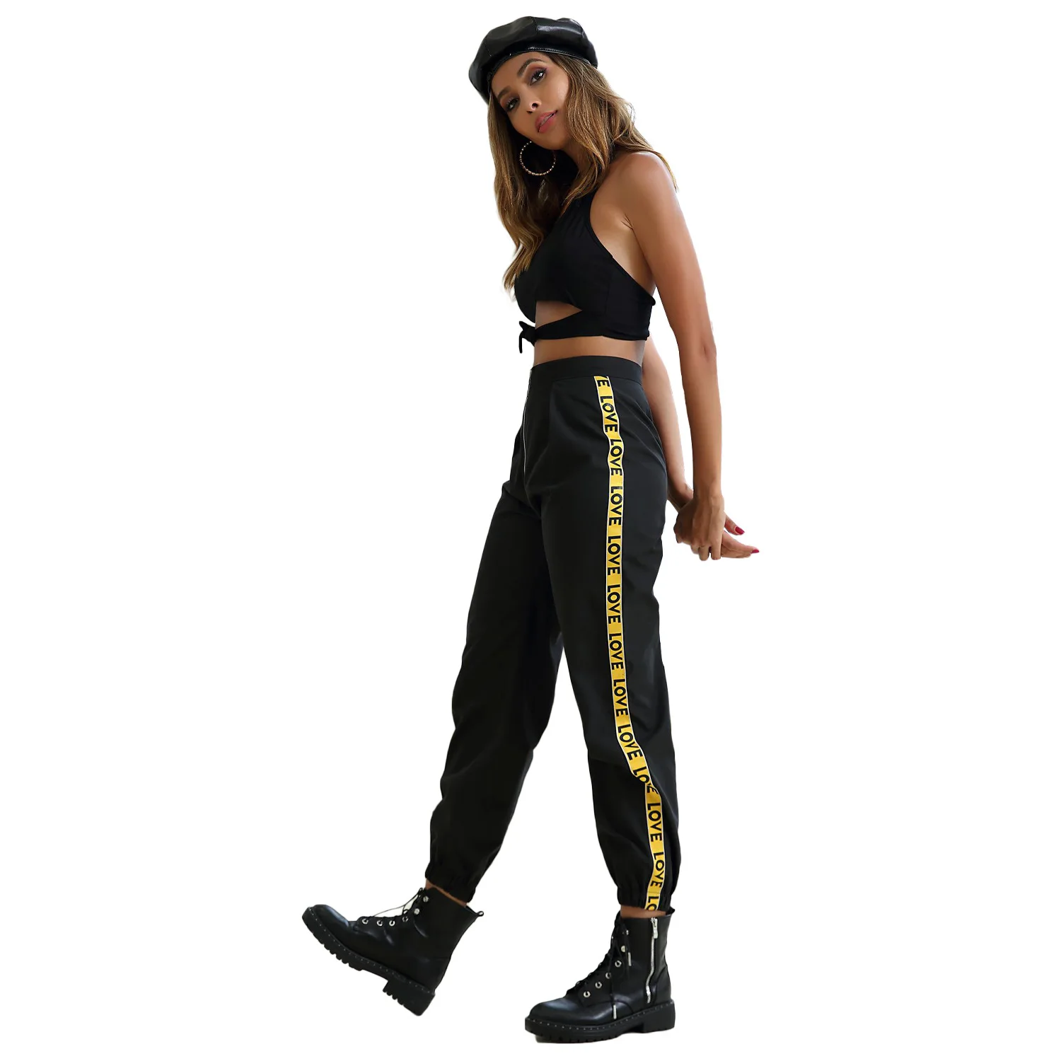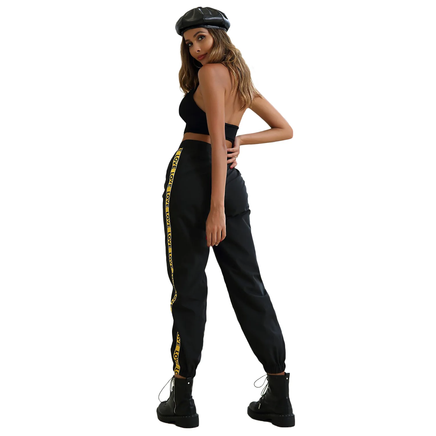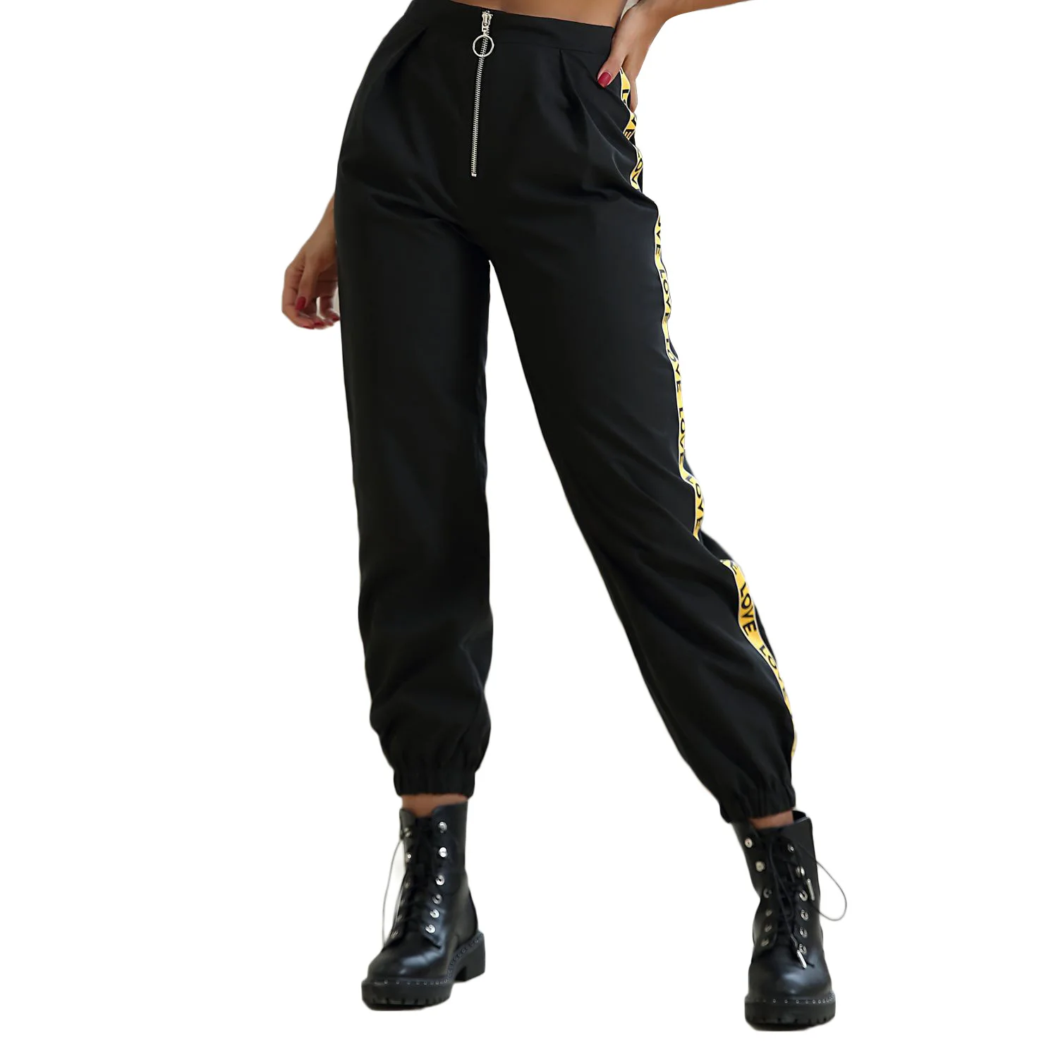 Chance Description of HOUZHOU Cargo Pants Women Streetwear 2020 Summer Letter Patchwork High Waist Pants Joggers Trousers Black Zipper Sweatpants