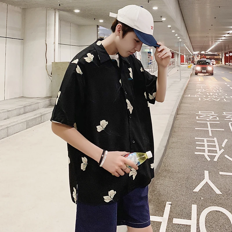 If You want to buy for Shirts, then Men's 2019 Summer New Print Short Sleeve Shirt Loose Slim Short Sleeve Shirt Personality Fashion Hip Hop Youth Men's Wear may be make you love