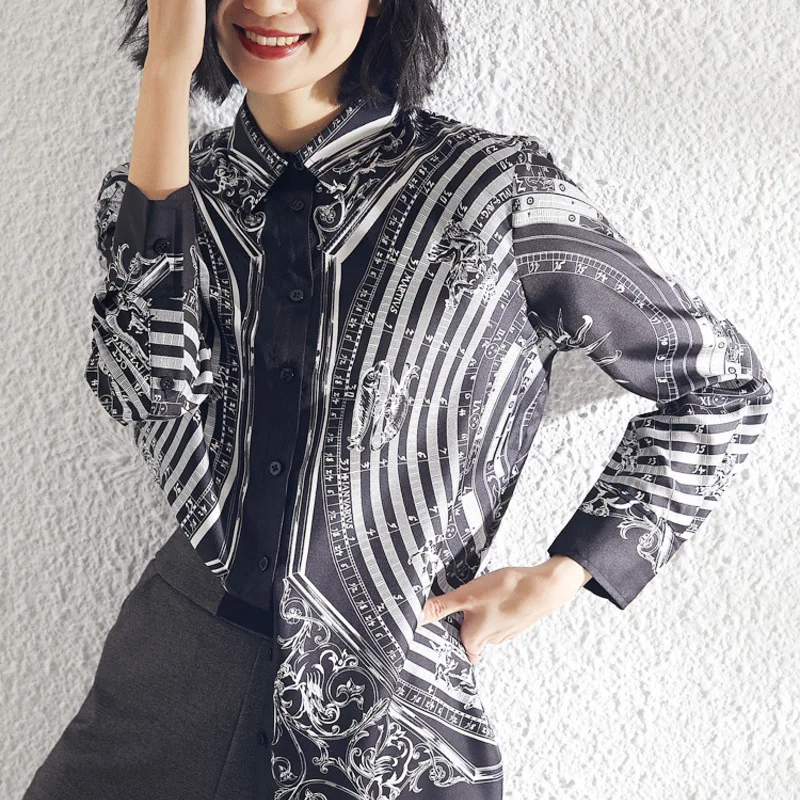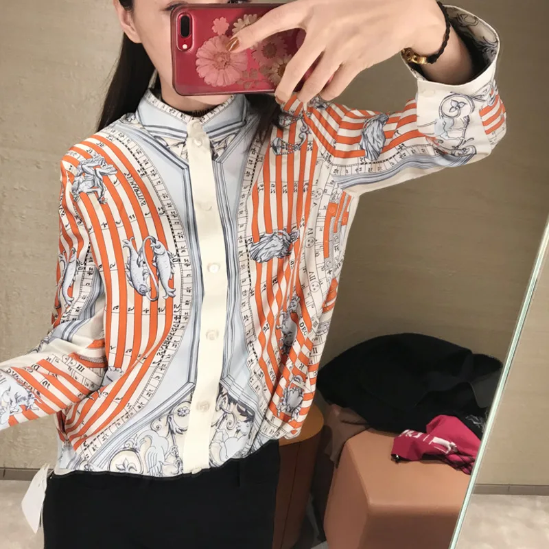 Related Product for [KEYWORD] and New Silk flower silk top women s loose Long Sleeve Shirt Large mulberry silk shirtWomen shirts Cotton Blouses 2020 Spring Long Sleeve Turndown Collar Striped Patchwork Shirt Femme Casual Harajuku Top Blusas