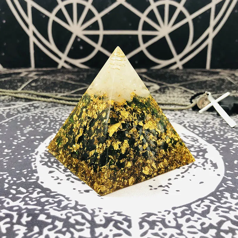 Orgonite Large Pyramid Spiritual Joy Rich Series Auger Energy Amplifier Augon Pyramid Exorcism Resin Decorative Craft Jewelry