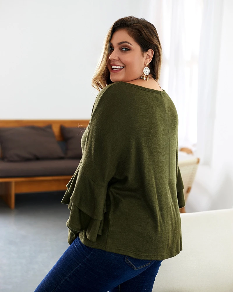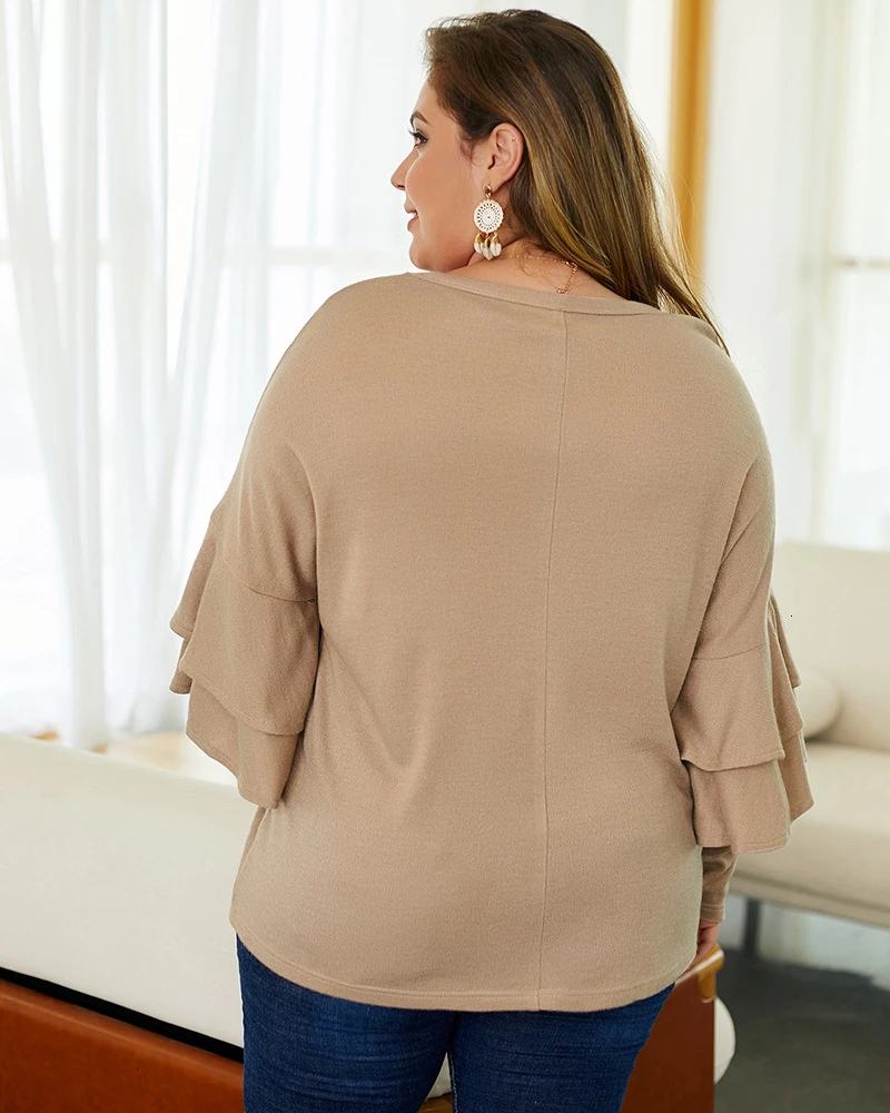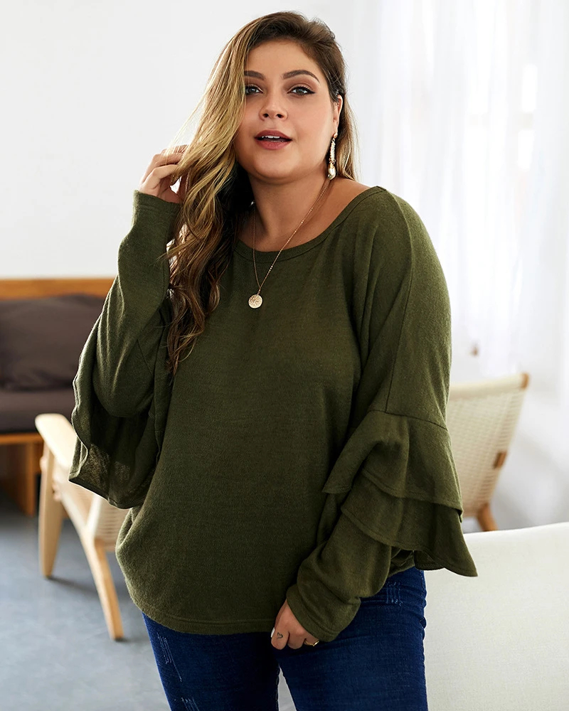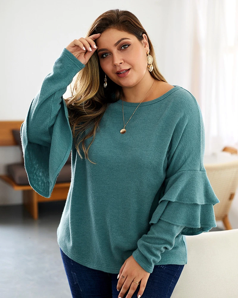.Pictures for Plus Size Autumn Casual Fashion Women Pullover Crew Neck Long Ruffles Sleeve Plain Color Simple Baggy Tops 2020 Pull Femme New