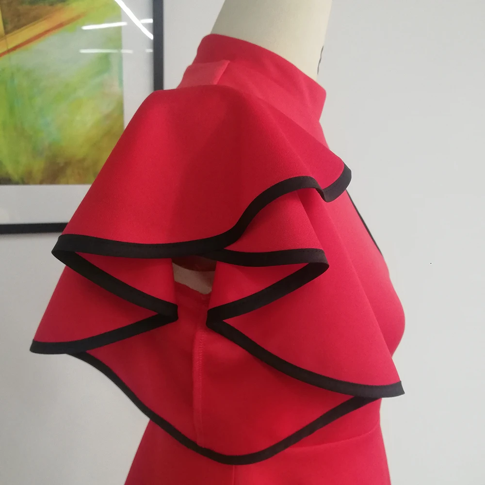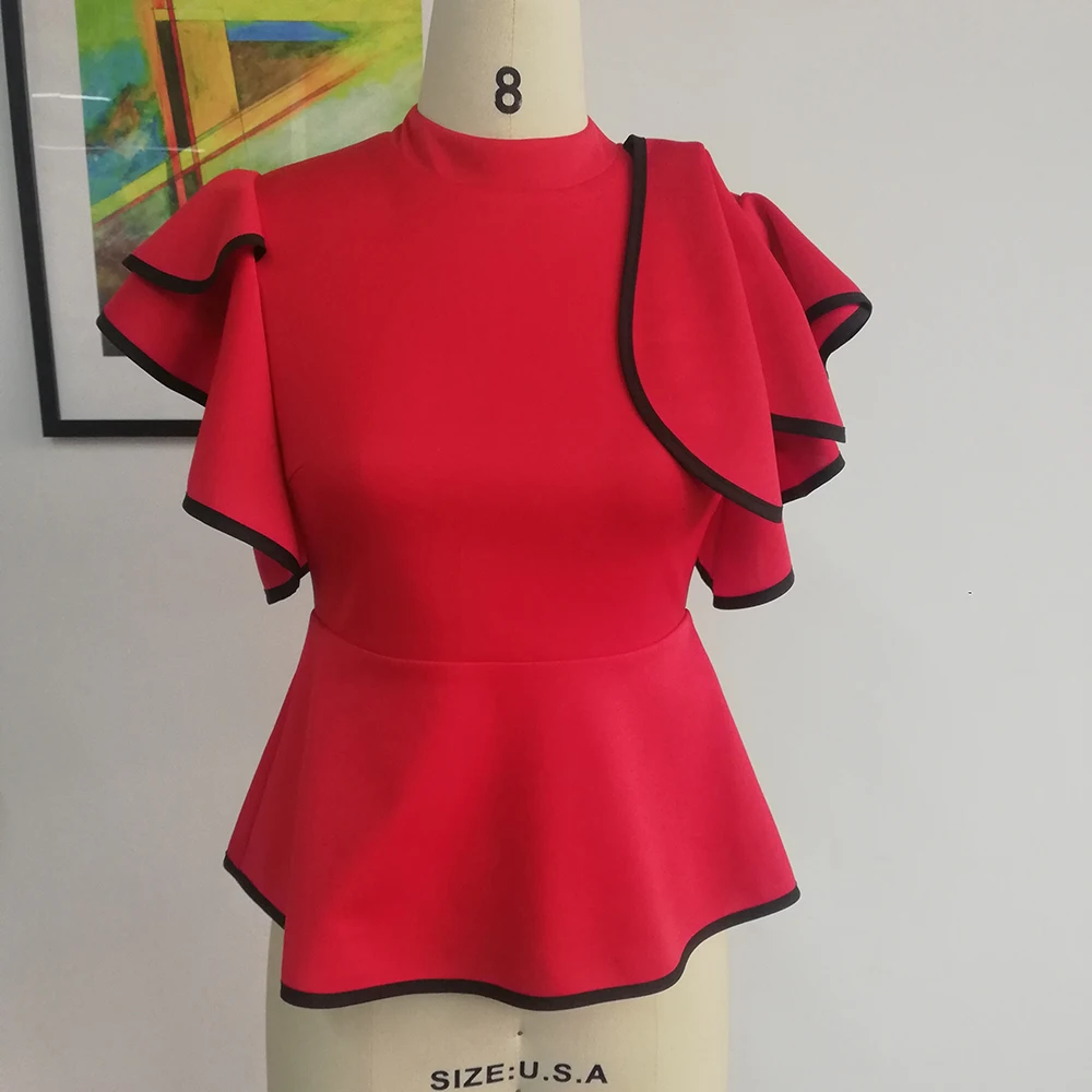 .Gallery for Red Falbaba Women Blouse Tops Summer African Ruffles Sleeve High Waist Female Shirts Elegant Office Lady Work Tops 2020 Blouses