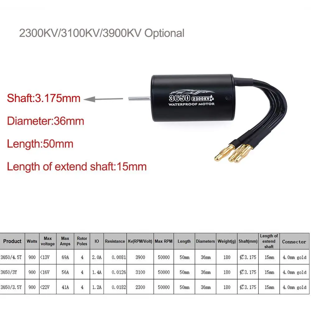 Addition Information of SURPASS HOBBY 3.175mm 3650 2300KV/3100KV/3900KV Sensorless Brushless Waterproof Motor for 1/10 RC Tamiya Redcat HSP Buggy Car