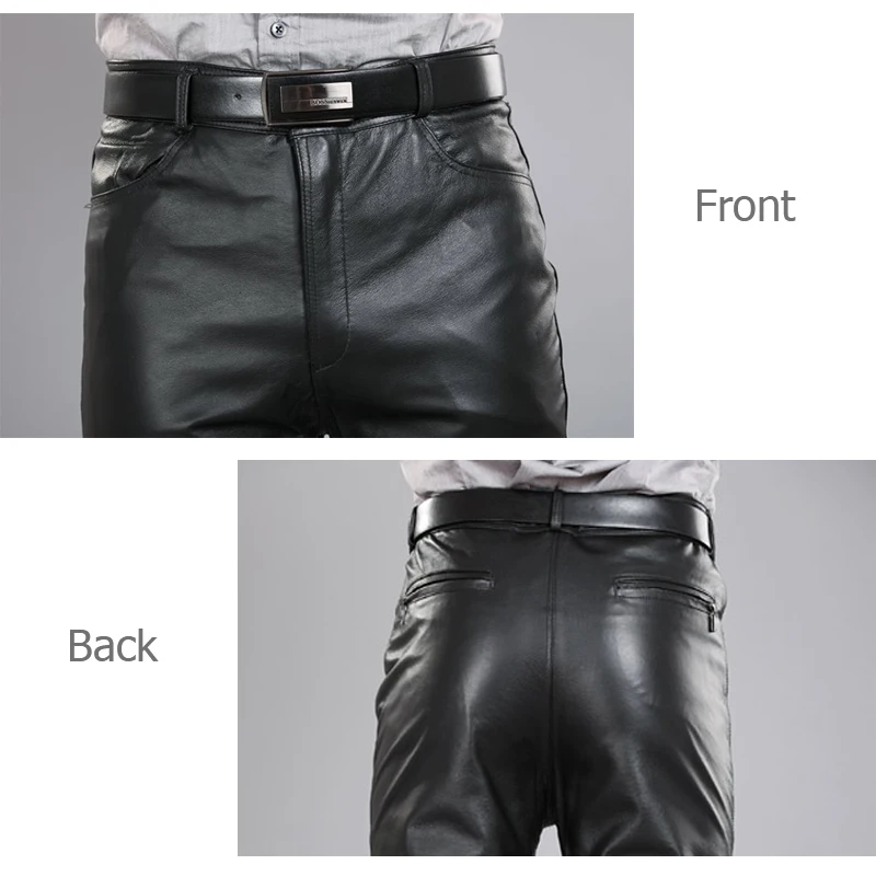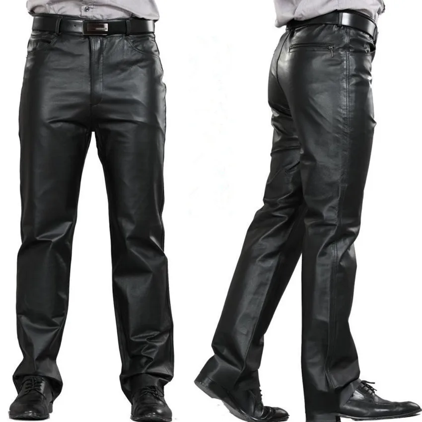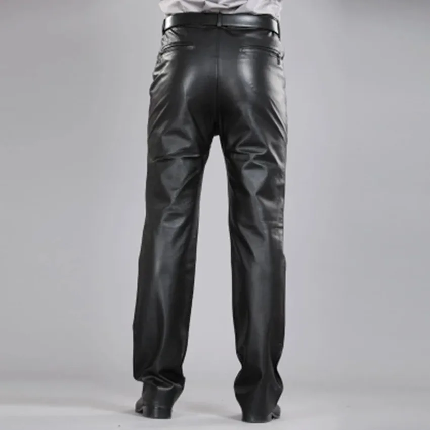 .Pictures of 2014 Male Genuine Leather Straight Pants Men's Plus Size Sheepskin Leather Motorcycle Pants