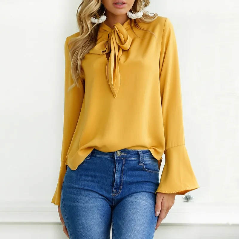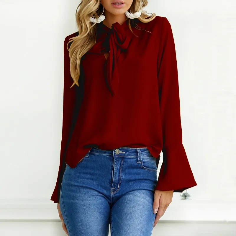 Best Price of 2019 Oversized ZANZEA Women Blouse Long Flare Sleeve Lace Up Bow Tie Loose Shirt Chic Pullover Fashion Baggy Party Blusas S-5XL