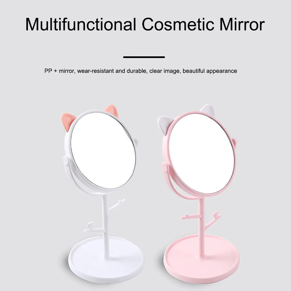 .Images for Adjustable Desktop Multi-function Vanity Mirror Table Makeup Mirror Cat Ear Jewelry Box Cosmetic Mirror