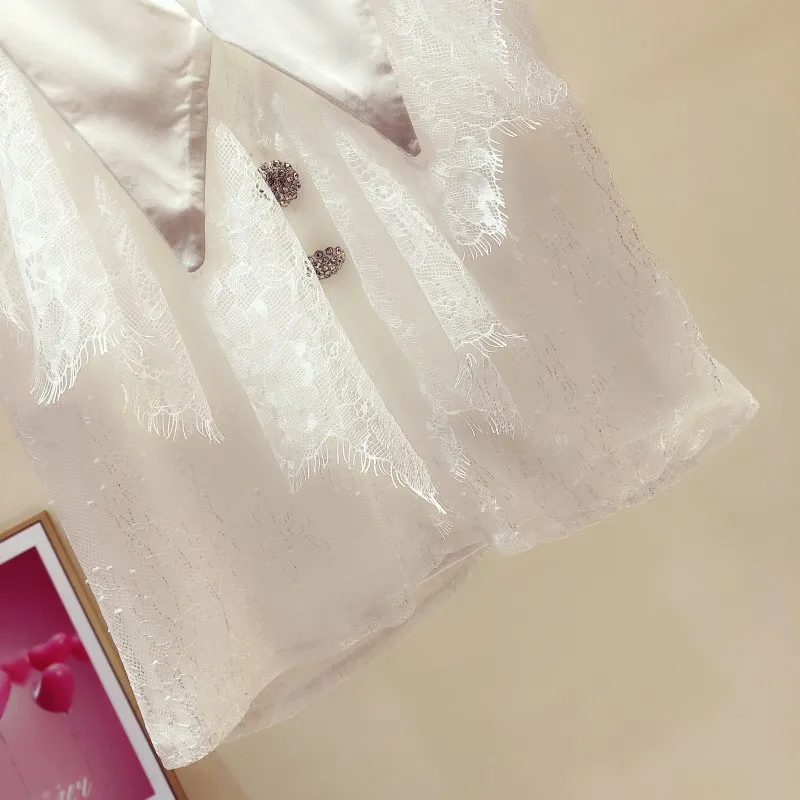 Addition Information of Blouse Women 2020 Summer Wear New Fold-down Collar Ddiamante Buckle Lace Flounced Shirt Women's Elegant White Lace Blouses Blusa
