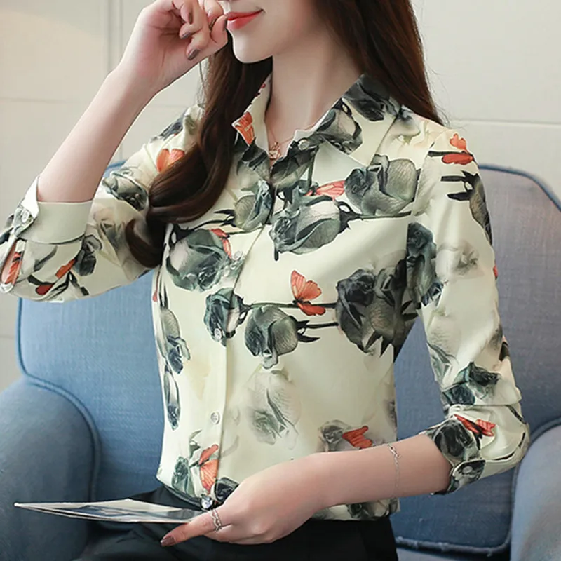 Korean Chiffon Women Blouses Elegant Woman Satin Blouse Woman Long Sleeve Shirt Plus Size Women Shirts Womens Tops and Blouses