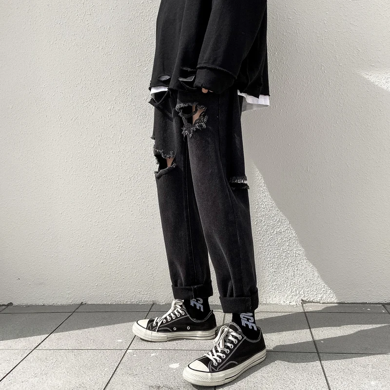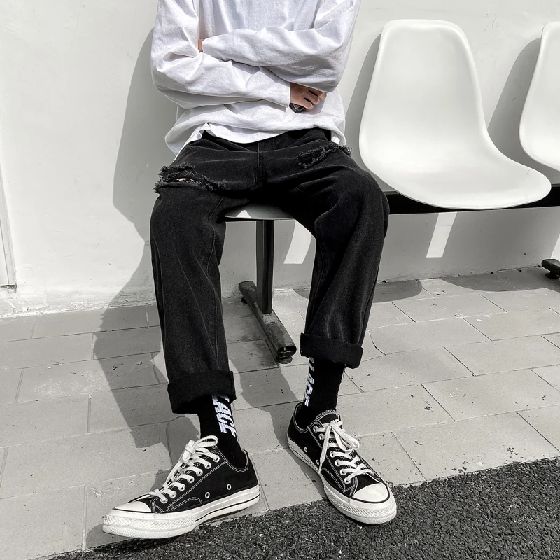 Related Product for [KEYWORD] and Blue Black Ripped Jeans Men's Fashion Washed Retro Casual Straight Jeans Pants Men Streetwear Loose Hip Hop Hole Denim TrousersBlack Color New Fashion Casual Men Pants Slim Fit Leg Men Jeans Hip Hop Jeans Men Punk Style Trousers Pants for Men