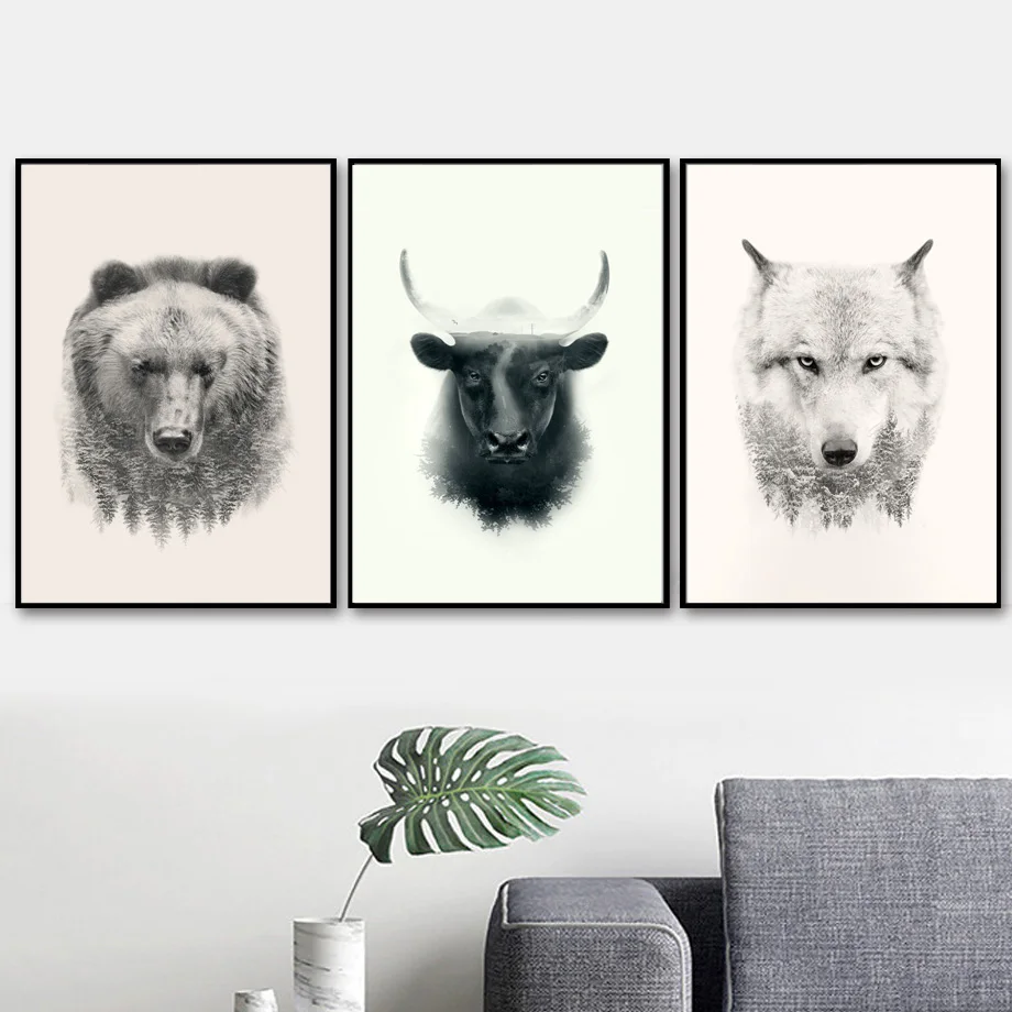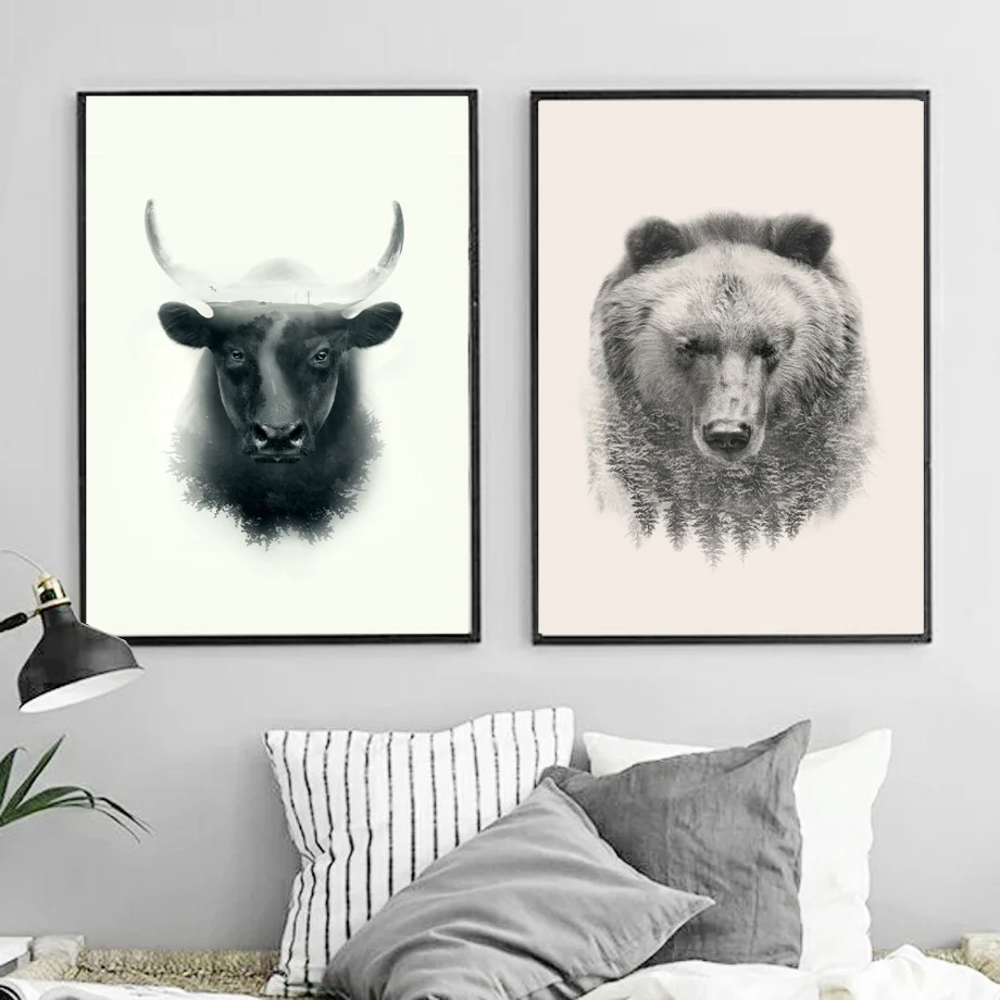 Best Bull Bear Wolf Abstract Nature Forest Nordic Poster And Prints Wall Art Canvas Painting Wall Pictures For Living Room Home Decor Free Shipping