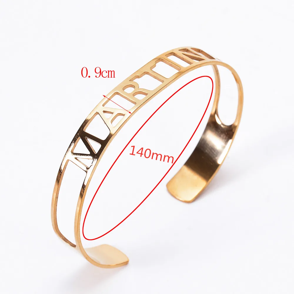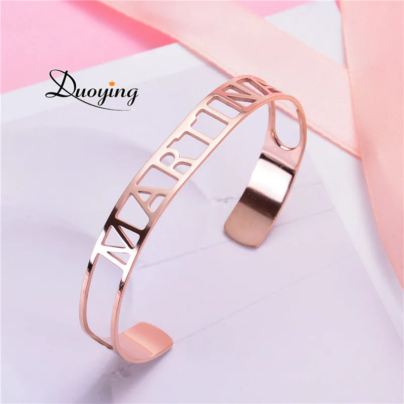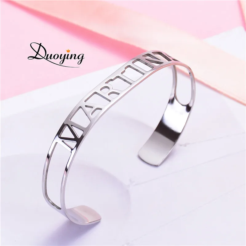 Cheap Price of Duoying Hollow Name Bangle 8 mm Width Hollow Bar Bracelet Custom Name Personalized Bracelets Jewelry for Etsy Best Friend Gifts